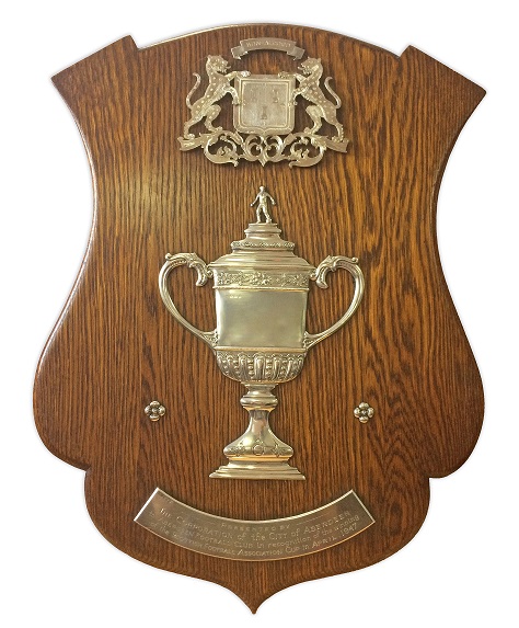 A simple but striking oak shield set with a solid silver replica of the Scottish Cup and with a silver plate containing details of the Dons? first success in the venerable competition provide one of the most memorable pieces in The Aberdeen Collection. Adding to the significance is that the shield was presented to the Club by the City of Aberdeen Corporation, and they did not stint on the gift.