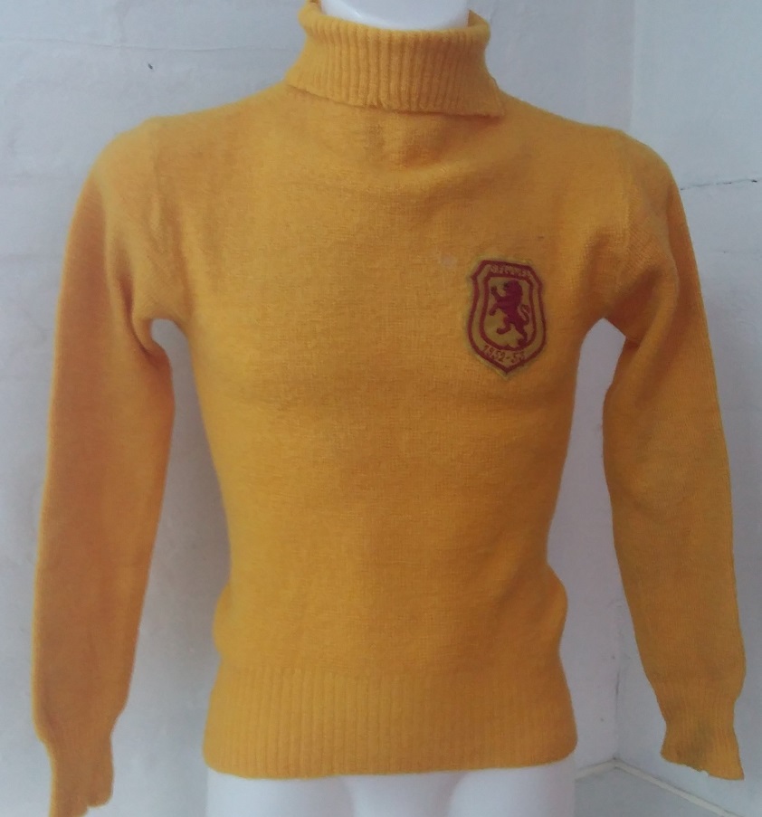 Some time later, Fred gave the jersey to a young lad to wear whilst plying football and it is remarkable that it has survived almost intact after its heavy usage. Unfortunately, being a piece of woollen clothing, the jersey has shrunk through being washed and is consequently a good deal smaller that when it was worn by Fred in that match in 1952.